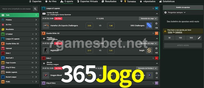 O 365Jogo oferece uma grande seleção de opções de apostas em e-sports com probabilidades competitivas